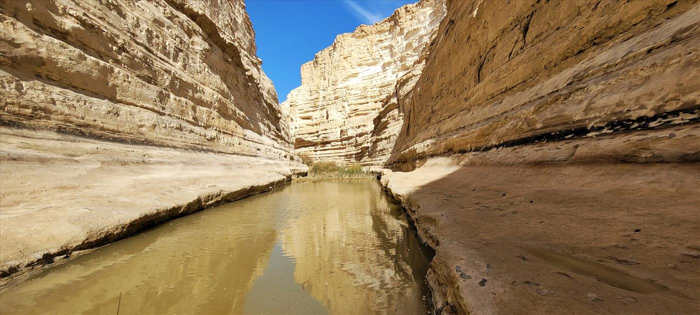 העונה הזו היא הזמן האידאלי להגיע, לא רק בגלל המים. החולות מתקשטים עכשיו בפריחה יפהפיה של אירוס ירוחם וחבצלת הנגב, שמוסיפים כתמי צבע סגולים ולבנים לצהוב המדברי. ואז מגיע הרגע הגדול: הגב עצמו. מדובר בבריכה טבעית מרשימה באורך של כ-7 מטרים, שנחבאת בין קירות הסלע. השנה, אחרי החורף המבורך שקיבלנו, הגב עמוק במיוחד ומלא במים קרים וצלולים שיחזיקו מעמד עוד חודשים ארוכים.