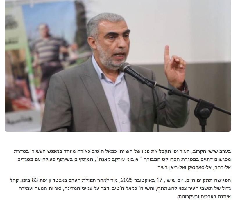 סגנו של ראאד סלאח יו"ר ארגון הטרור הפלג הצפוני של התנועה האיסלאמית, השתתף בכנס לחיזוק האיסלאם ביפו. בפרסומים נאמר שהכנס יערך במתחם של עיריית תל אביב.