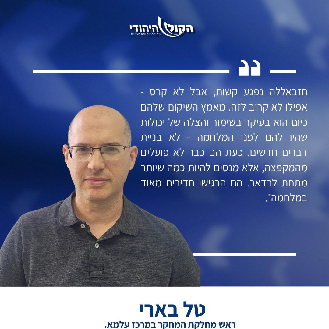 "אני לא יודע לדבר על קצב, אבל הם בתהליכי שיקום משמעותיים. חזבאללה נפגע קשות, אבל לא קרס - אפילו לא קרוב לזה. מאמץ השיקום שלהם כיום הוא בעיקר בשימור והצלה של יכולות שהיו להם לפני המלחמה - לא בניית דברים חדשים. כעת הם כבר לא פועלים מהמקפצה, אלא מנסים להיות כמה שיותר מתחת לרדאר. הם הרגישו חדירים מאוד במלחמה".