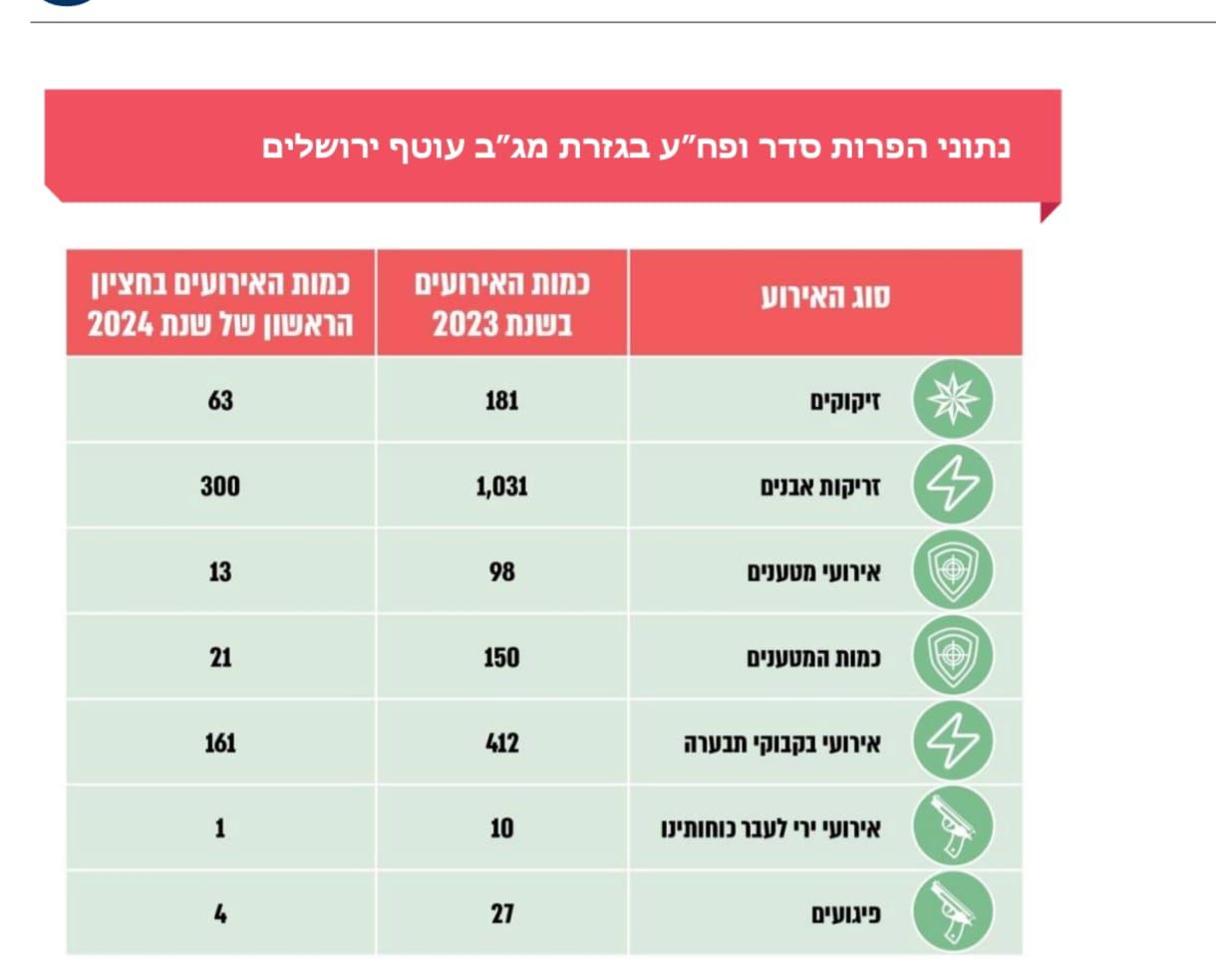 על מנת לעמת את אזהרתו לכאורה של ראש השב"כ לשעבר רונן בר עם ההתרחשויות בשטח ניתן לעיין בטבלה מתוך דו"ח מבקר המדינה בעניין מזרח ירושלים המשווה את ארועי הפרות הסדר ופח"ע בגזרת מג"ב עוטף ירושלים ב-2023 לפני הגברת האכיפה על ידי בן גביר לעומת החציון הראשון של 2024 - יש להדגיש כי בחציון זה חל גם חודש הראמדן באותה שנה.