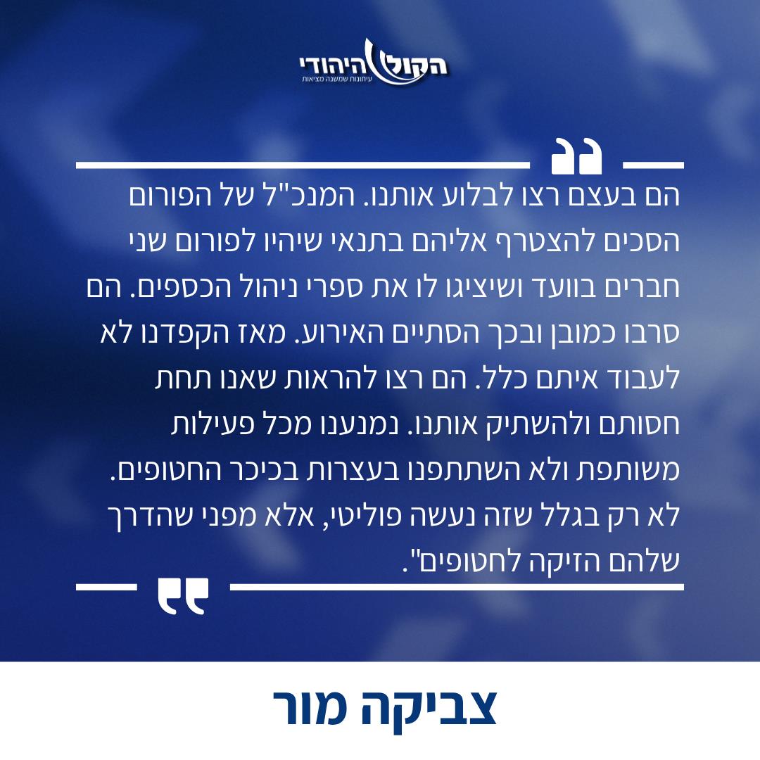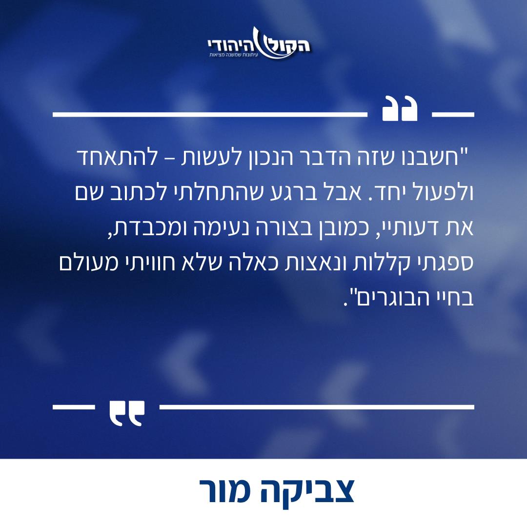 לא פעם הרגיש צביקה מור כי הוא בודד במערכה. "היו לא מעט צמתים שנותרתי לבד מעין אצבע בסכר. לחלק מהמשפחות היה קשה להיות בעשייה בלתי פוסקת ולהחזיק בטונים גבוהים לאורך זמן, אך כיו"ר הפורום ראיתי חשיבות עליונה להיות בכל אירוע ולעמוד בפרץ נגד הכיוון המסוכן שדחפו אליו מטה החטופים".