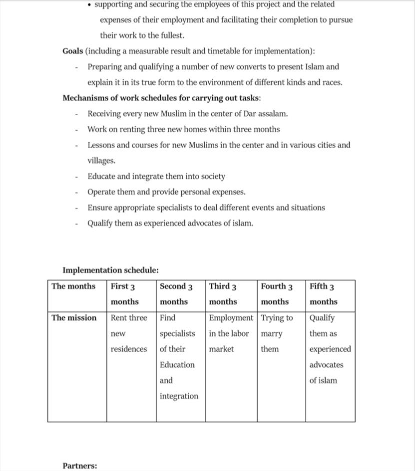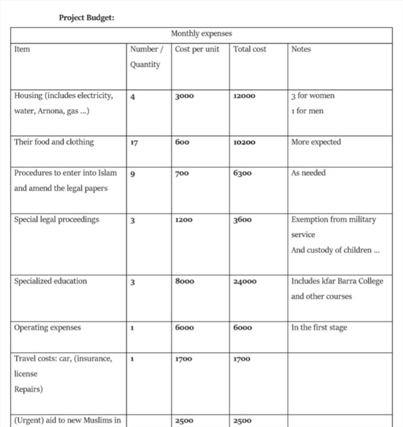 3. דאגה לצרכי המתאסלמים, אותם הם מכנים "המוסלמים החדשים" -דיור, מזון, ביגוד, צרכים משפטיים כגון השגת פטור מהצבא ומשמורת על ילדים במקרה שההתאסלמות הובילה לגירושין.